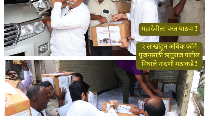 महादेवी हत्तीणीला परत आणण्याच्या स्वाक्षरी अभियान अंतर्गत देशभरातील 2 लाख 4 हजार 421 लोकांच्या स्वाक्षरी असलेले सर्व फॉर्म घेऊन ऋतुराज पाटील यांनी नांदणी मठाकडे लोकांसह प्रयाण केले. नांदणी मठाचे महास्वामीजी यांच्या हस्ते या स्वाक्षरी केलेल्या सर्व फॉर्मचे पूजन करण्यात येणार आहे.